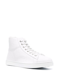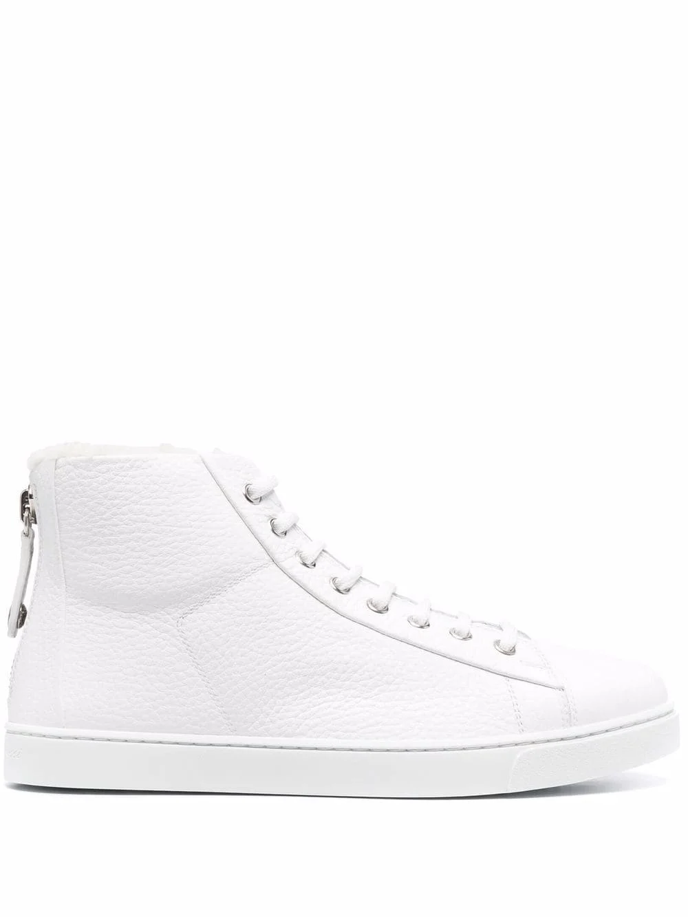 leather high-top sneakers An elevated take on casual footwear, these white sneakers from Gianvito Rossi have a high-top silhouette, leather construction and are lined with cosy shearling. Highlights - White - Leather - Ankle-length - Round toe - Front lace-up fastening - Rear zip fastening - Shearling lining - Flat rubber sole Made in Italy Composition Leather 100% SIZE & FIT Measurement HEEL 0.98 in(2.5 cm) HEIGHT 3.93 in(10 cm) Sole height 0.78 in(2 cm)