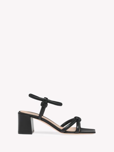 Juno 55 is a squared-toe sandal with a 55mm block heel. Crafted from metallic-effect leather, this style features soft tubular upper straps with knotted details. The round tubular elastic ankle strap covered in leather ensures easy wearability. Handmade in Italy. - Composition: 100% NAPPA - Heel Height: 2.2 inches / 55 mm - Model Code: G32445.55RIC Item ID: G32445.55RIC.NPSMEKO