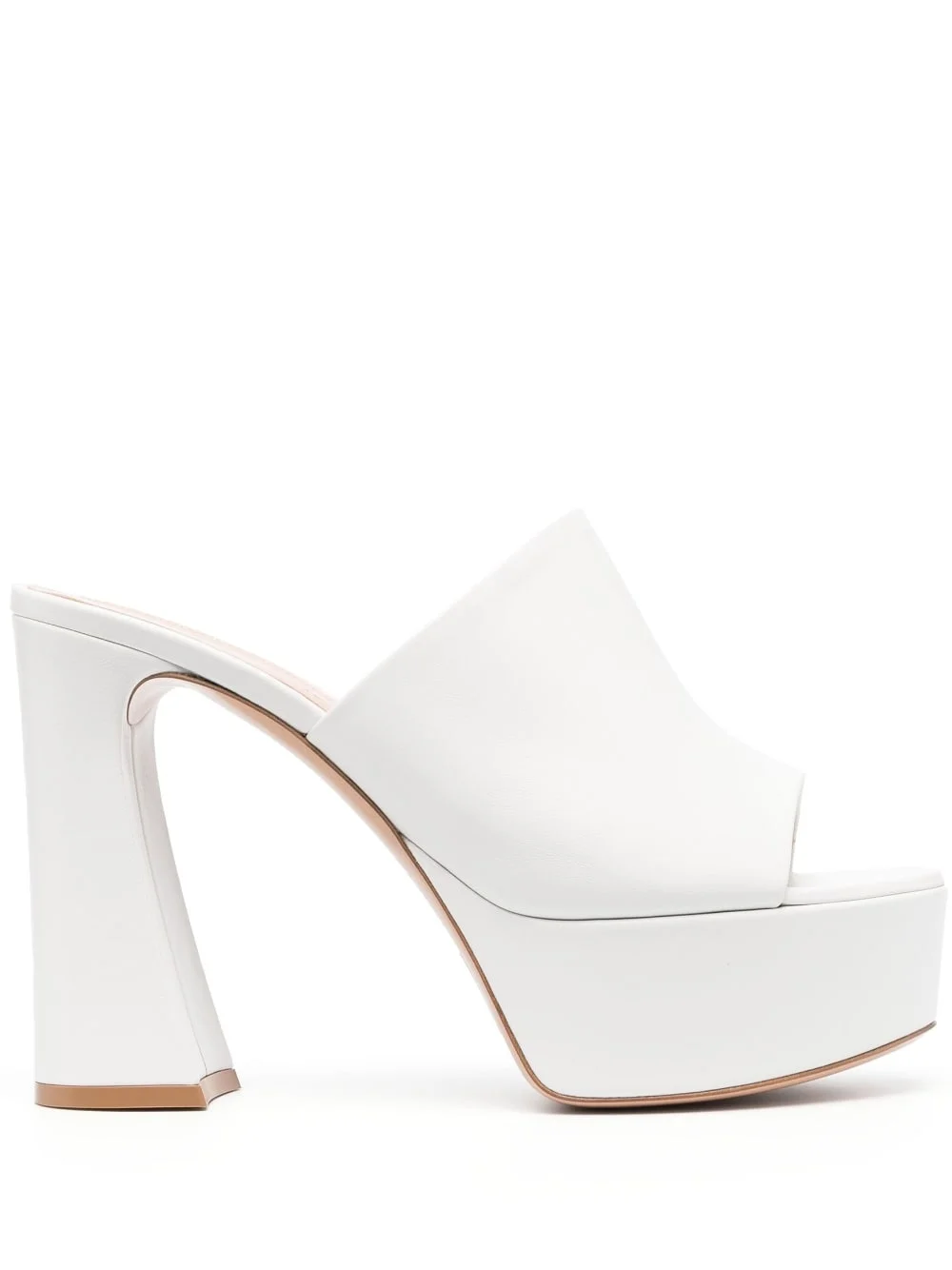 130mm leather sandals Highlights - White - Calf leather - Single toe strap - Round toe - Open toe - Slip-on style - Branded insole - High heel Made in Italy Composition Lining: Calf Leather 100% Outer: Calf Leather 100% Sole: Calf Leather 100% SIZE & FIT Measurement HEEL 5.11 in(13 cm) PLATFORM 1.57 in(4 cm)