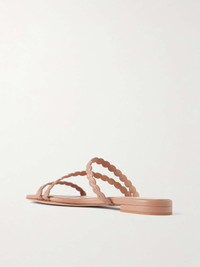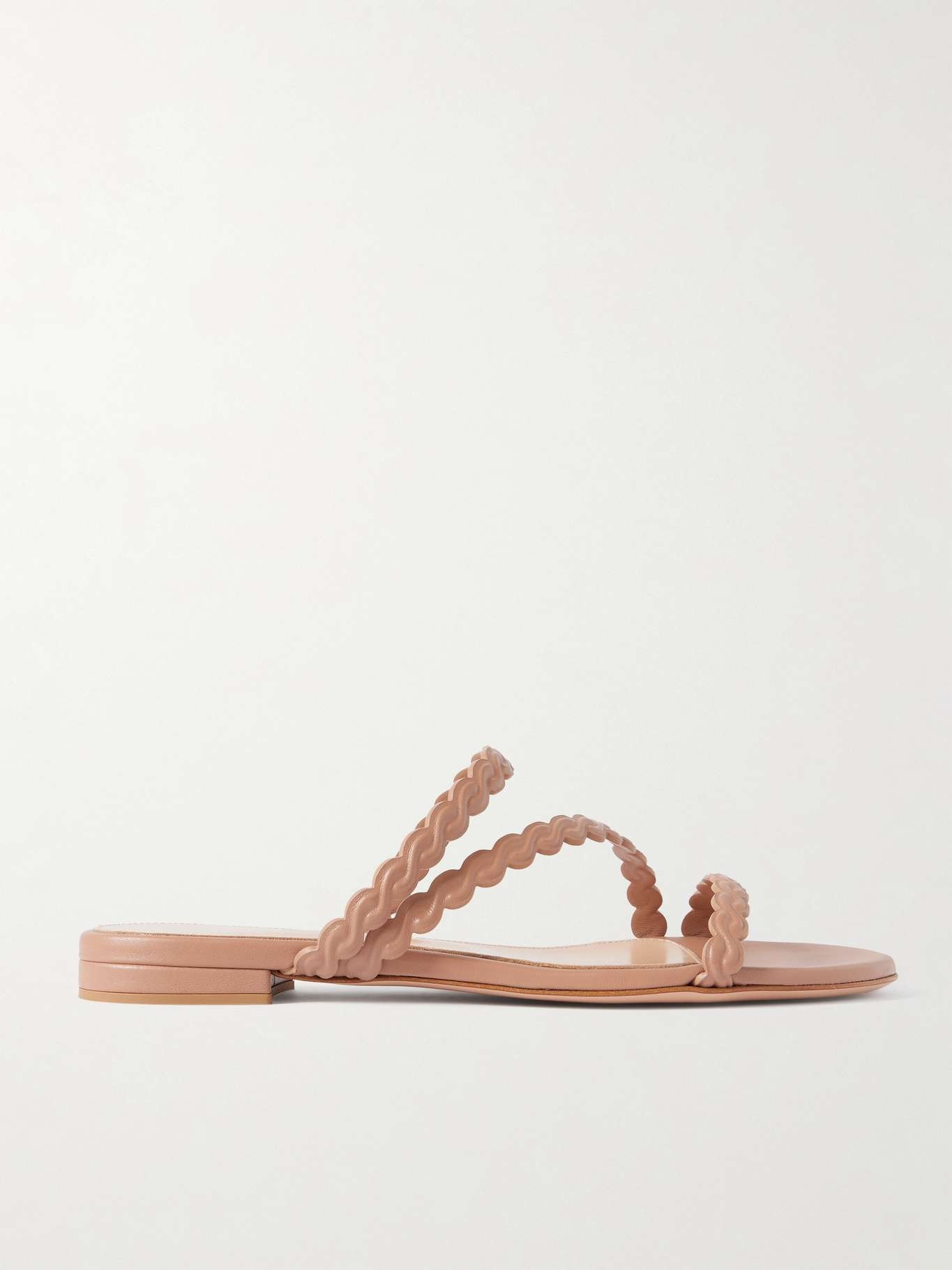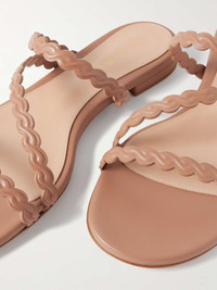EDITORS'NOTES Gianvito Rossi's sandals embody both the brand's "less-is-more aesthetic" and commitment to exceptional craftsmanship. They've been handmade in Italy from supple leather that's designed to look twisted but feels smooth underneath for comfort. They have slim soles and slight heels. SIZE & FIT - Fits true to size, take your normal size - Italian sizing DETAILS & CARE - Slight heel - Tan leather - Slip on