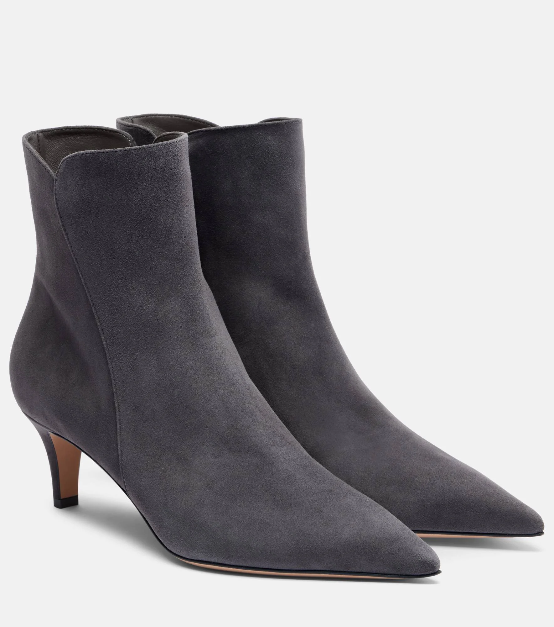 Crafted from materials of the highest quality, Gianvito Rossi’s designs are handmade using both traditional craftsmanship and innovative techniques. The Levy suede ankle boots are shaped with 55mm heels and pointed toes. Product Details - Upper: leather (suede) - Lining: leather - Sole: leather insole and sole - Toe shape: pointed toe - Made in Italy - Includes: shoe box, dust bag - Designer color name: Lapis - Item color: gray - Item number: P01096320 Size & Fit - True to size - European sizes - 5,5cm-2" heel (size EU 38)