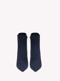 Set on an 85mm sleek stiletto heel, Levy 85 is a pointed toe ankle bootie in soft leather, standing out for its curved detail on the upper edge and tonal stitching. Handmade in Italy. - Composition: 100% SUEDE - Heel Height: 3.3 inches / 85 mm - Model Code: G70321.85RIC Item ID: G70321.85RIC.CASDENI