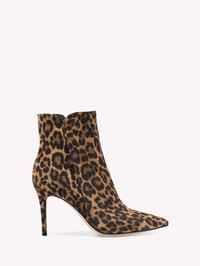 Set on an 85mm sleek stiletto heel, Levy 85 is a pointed toe ankle bootie in soft leather, standing out for its curved detail on the upper edge and tonal stitching. Handmade in Italy. - Composition: 100% SUEDE - Heel Height: 3.3 inches / 85 mm - Model Code: G70321.85RIC Item ID: G70321.85RIC.CMDALLP