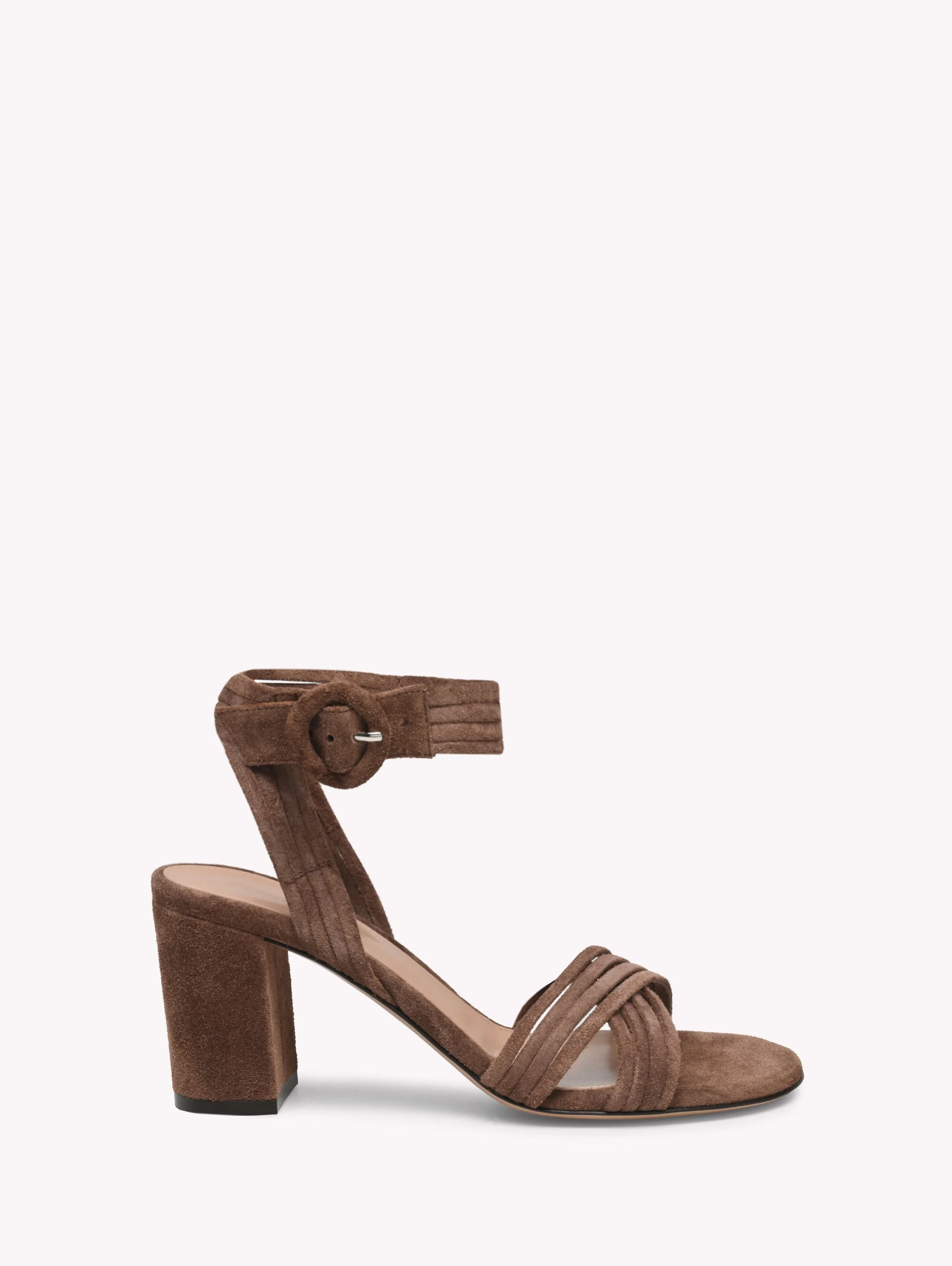 Crafted from supple suede, Lianne is a round toe sandal with a 70mm chunky heel. The upper presents a criss-cross design with four straps and is completed with a round buckle at the ankle strap. Handmade in Italy. - Composition: 100% SUEDE - Heel height: 2.8 inches / 70 mm - Model Code: G32603.70RIC Item ID: G32603.70RIC.VLUBROW