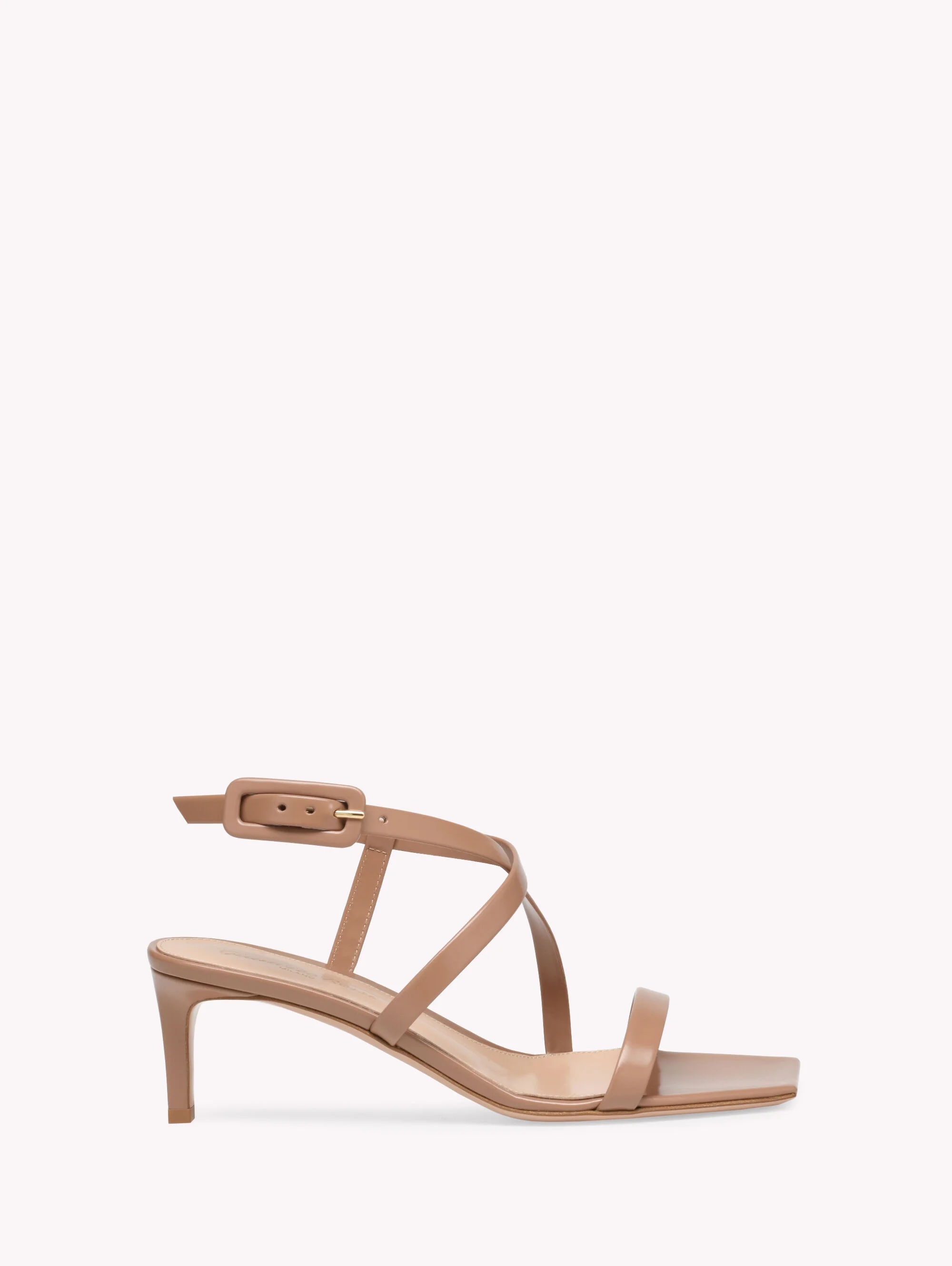 Crafted from precious leather, Lindsay Sandal is a squared-toe style with a squared 55mm kitten heel and an asymmetric cross-over upper. The ankle strap is enriched with a matching leather-covered rectangular buckle. Handmade in Italy. If you wish to return a product, you can return it for free within 30 days of the reception of your order. Please return the items in the same condition in which they were received, including dustbag, box and protective stickers. Incomplete, damaged, worn or altered items cannot be accepted as stated in our Terms and Conditions . Standard shipping FREE (3-5 business days) Express shipping $60 (1-3 business days) Deliveries are made from Monday to Friday between 9:00 a.m. and 6:00 p.m. The time frame for delivery is calculated from the time your order is dispatched, not from the time your order was placed. Please check our Shipping page for further information. - Composition: 100% CALF - Heel height: 2.2 inches / 55 mm - Model Code: G32352.55RIC Item ID: G32352.55RIC.TOKPRAL