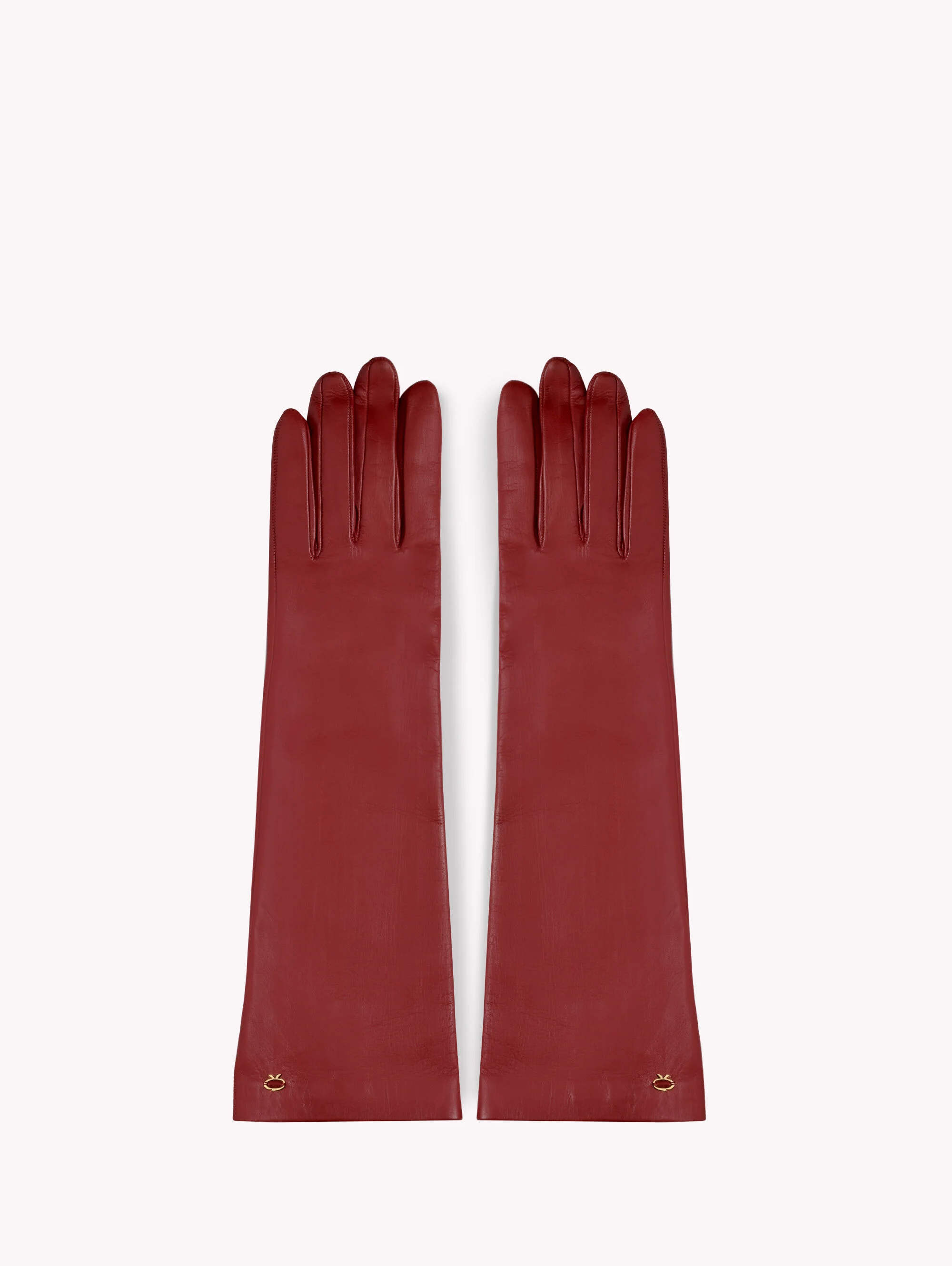 Crafted from soft glossy leather, Mimi is a mid-arm glove embellished with the mini Ribbon detail, signature of the Maison. Fully lined in 100% silk fabric. Handmade in Italy. - Composition: 100% NAPPA - Heel Height: 0 - Model Code: K00874.00WOM Item ID: K00874.00WOM.NUIROUG
