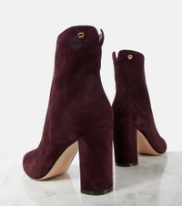 Crafted from materials of the highest quality, Gianvito Rossi’s designs are handmade using both traditional craftsmanship and innovative techniques. The Lyell ankle boots are expertly made from smooth suede and feature block heels, pointed profiles, and signature hardware. Product Details - Upper: leather - Lining: leather - Sole: leather insole and sole - Toe shape: pointed toe - Made in Italy - Includes: shoe box, dust bag - Designer color name: Bourgogne - Item color: brown - Closure: zipped side - Item number: P01063956 Size & Fit - True to size - European sizes - 8,5cm-3.5" heel (size EU 38)