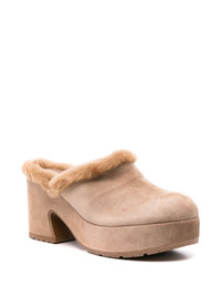 Lyss 85mm suede mules Highlights - Camel brown - Calf suede - Slip-on style - Round toe - Branded leather insole - Platform sole - 85mm wedge heel Made in Italy Composition Suede 100% SIZE & FIT Measurement HEEL 3.34 in(8.5 cm) Sole height 1.37 in(3.5 cm)