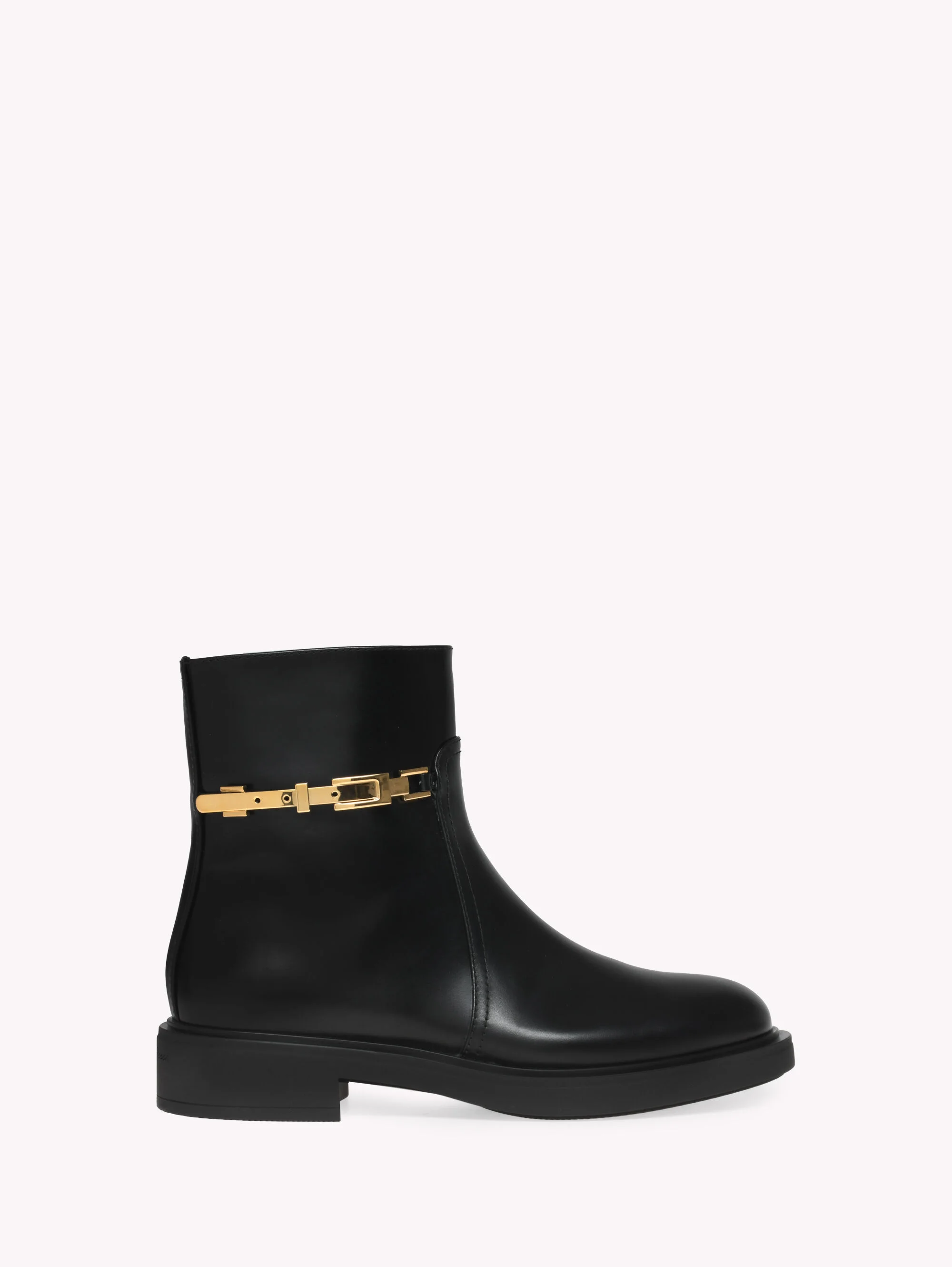 Crafted from leather, Martine Bootie is a round toe fitted style with an inside zip and a custom-made metallic detail. The urban sole measures 33mm at the back of the heel. Handmade in Italy. - Composition: 100% CALF - Heel Height: 0.8 inches / 20 mm - Model Code: G72954.20GOM Item ID: G72954.20GOM.DVDNERO