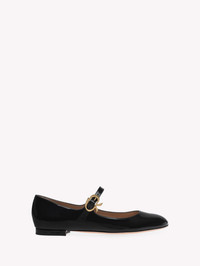 Crafted from patent leather, Mary Ribbon 05 is a round toe style, set on a 5mm stack heel. The iconic Ribbon buckle, signature of the brand, embellishes the front strap. Handmade in Italy. - Composition: 100% CALF - Heel height: 0.2 inches / 5 mm - Model Code: G22164.05CUO Item ID: G22164.05CUO.VERNERO