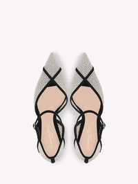 Crafted from suede and mesh fabric, Confetti D'Orsay is a pointed-toe Mary Jane pump with a 95mm stiletto heel and a suede trim criss-cross motif. The front strap is embellished with the signature Ribbon buckle. Handmade in Italy. - Composition: 40%CAMOSCIO+60%TESSUTO - Heel Height: 3.8 inches / 95 mm - Model Code: G41009.95RIC Item ID: G41009.95RIC.OXCOFNE
