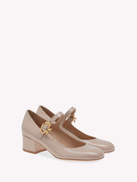 Crafted from patent leather, Mary Ribbon is a round toe style, set on a 45mm block heel. The iconic Ribbon buckle, signature of the brand, embellishes the front strap. Handmade in Italy. - Heel Height: 1.8 inches / 45 mm - Model Code: G22101.45RIC Item ID: G22101.45RIC.VERPEAH