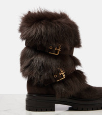 Product Details - Upper: leather - Lining: leather - Sole: leather insole, rubber sole - Toe shape: almond toe - Made in Italy - Includes: shoe box, dust bag - Designer color name: Moka+Moka - Closure: buckle fastening - Trim: shearling - Item number: P01001275 Size & Fit - True to size - European sizes - 5cm-2" heel (size EU 38) - 3cm-1" platform (size EU 38)