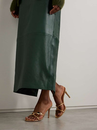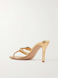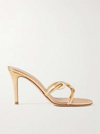 Gianvito Rossi's aptly named 'Black Mamba' mules are designed with interlocking straps that twist elegantly across your foot. They've been made in Italy from lustrous gold leather and have tonal hardware and 85mm stiletto heels. Size & Fit - Fits true to size, take your normal size - Italian sizing Details & Care - Heel measures approximately 85mm/ 3.5 inches - Gold leather (Lamb) - Slip on
