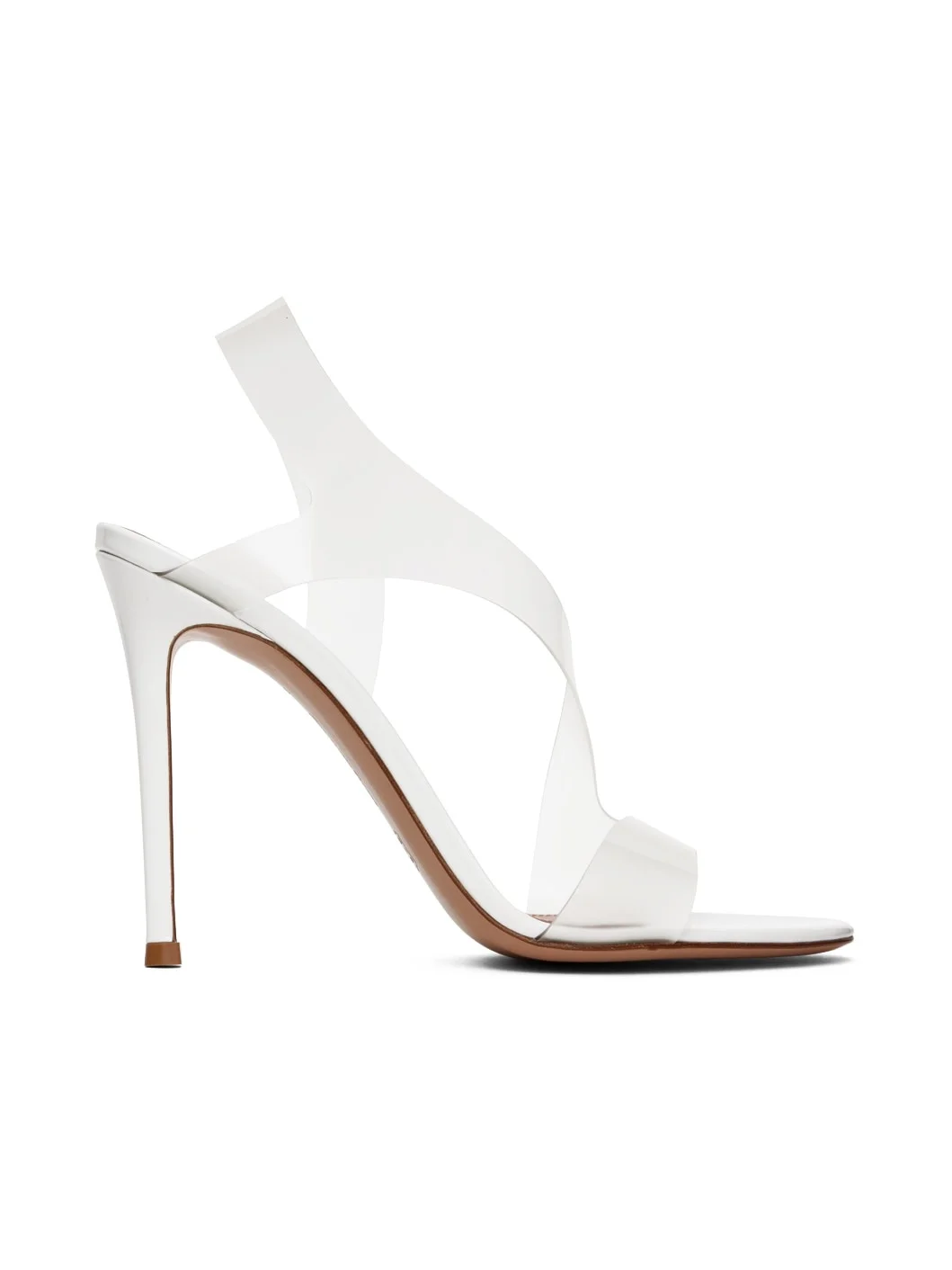 Handcrafted transparent TPU heeled sandals in white. · Open toe · Strap at vamp · Slingback ankle strap · Gold-tone logo stamp at leather footbed · Covered stiletto heel with rubber injection · Leather sole · Heel: H4" Supplier color: White/White Upper: thermoplastic polyurethane. Sole: leather, rubber. Made in Italy 241090F125000