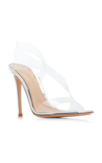 Gianvito Rossi is a shoemaking legacy — after 25 years alongside his father, Sergio Rossi, the designer opened his own namesake label. Adhering to the family tradition of impeccable quality and handicraft, it's known for constructing a 'perfectly engineered stiletto' with meticulous attention to comfort and fit. Handmade by Italian artisans, the 'Metropolis' sandal features a sleek PVC strap that wraps around the foot and a leg-lengthening stiletto heel made from silver leather. The lightly cushioned soles add just the right amount of comfort. PRODUCT DETAILS - Heel measures approximately 105mm/ 4" - Slip on - Composition: 100% TPU - Made in Italy