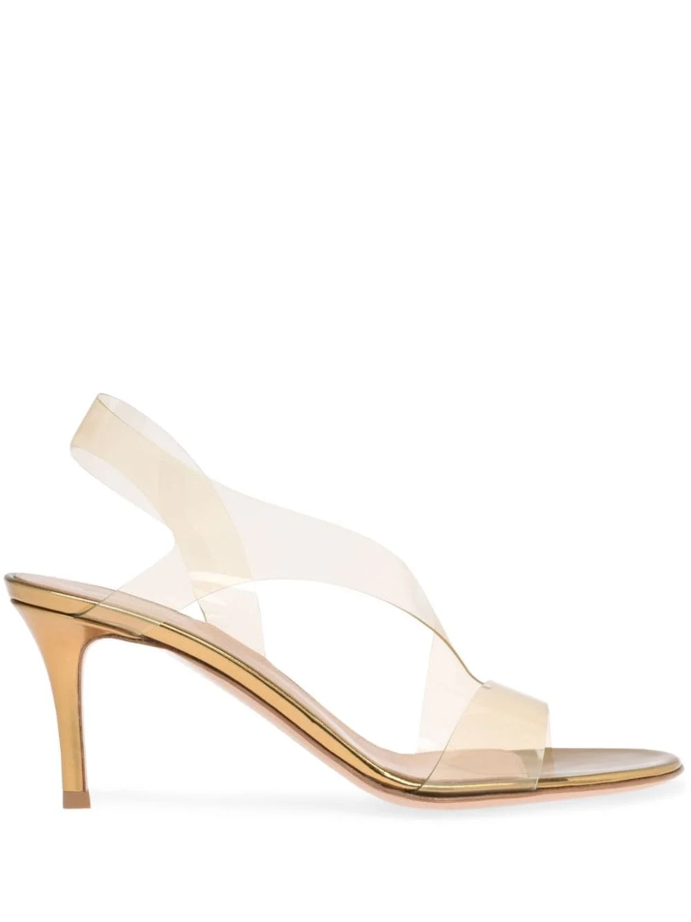 70mm Metropolis sandals Highlights - Gold-tone - Slip-on style - 70mm mid heel - Transparent design - Slingback strap - Round open toe - Branded leather insole - Leather outsole Made in Italy Composition Other fibres 100% SIZE & FIT Measurement HEEL 2.95 in(7.5 cm)