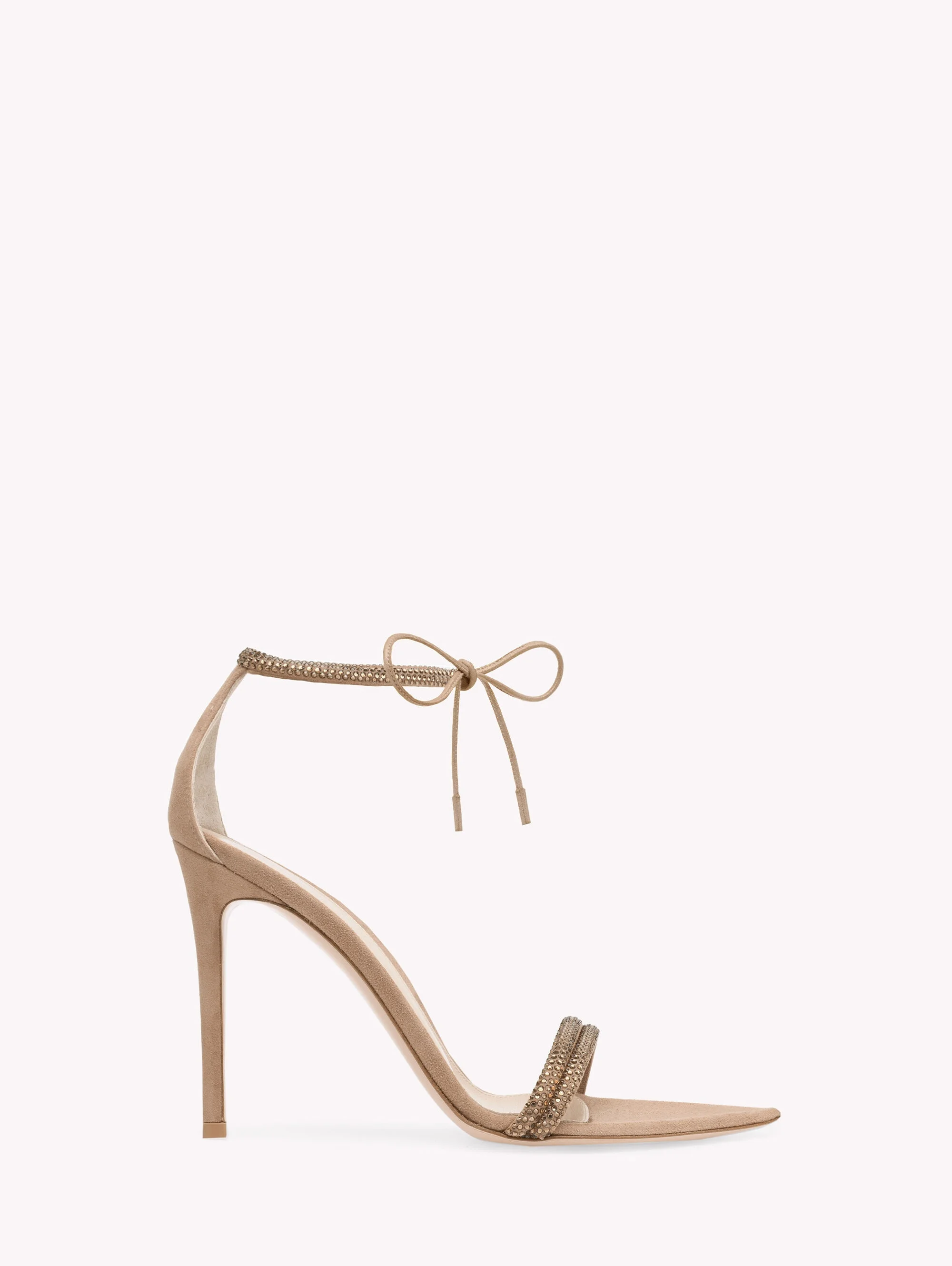 Light strikes, refracting in countless directions by the Montecarlo sandal’s crystals, embedded in the tubular straps and ankle tie for a three-dimensional effect. Made of suede, this pointed toe sandal is set on a 105mm stiletto heel. Wear it for a look rich with shimmering reflections. - Composition: 100% SUEDE - Heel height: 105 - Model Code: G61408.15RIC Item ID: G61408.15RIC.CAMPRAL