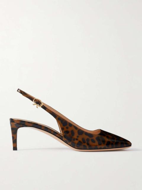 Nuit 55 leopard-print glossed-leather slingback pumps