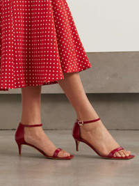 EDITORS'NOTES Gianvito Rossi’s ‘Nuit’ sandals will take practically any outfit from day to night. They’ve been made in Italy from glossy patent-leather and have a strappy, square-toe profile. The kitten heels look chic with mini and floor-skimming hems, plus anything in-between. SIZE & FIT - Fits true to size, take your normal size - Italian sizing DETAILS & CARE - Heel measures approximately 55mm/ 2 inches - Red patent-leather (Calf) - Buckle-fastening ankle strap