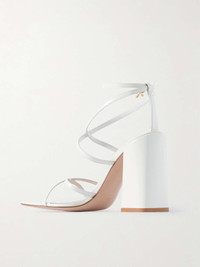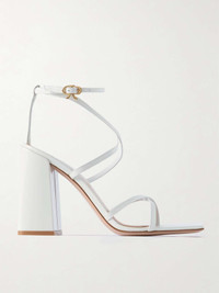 EDITORS'NOTES The barely-there straps and squared toe of Gianvito Rossi's 'Nuit' sandals make them reminiscent of styles from the '90s. They've been crafted in Italy from glossy patent-leather and sit atop a block heel that's high but sturdy. The true beauty lies in their versatility - they'll go with everything. SIZE & FIT - Fits true to size, take your normal size - Italian sizing DETAILS & CARE - Heel measures approximately 95mm/ 4 inches - White patent-leather (Lamb) - Buckle-fastening ankle strap