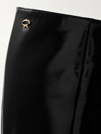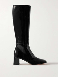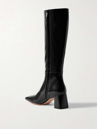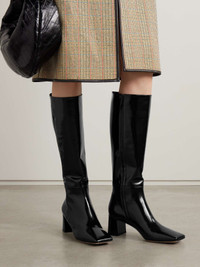 EDITORS'NOTES Gianvito Rossi's knee boots are part of the label's 'Nuit' collection which is defined by angular square toes. Made in Italy from glossy patent-leather, they're minimally detailed with the signature ribbon hardware at the cuffs and set on comfortable 55mm block heels. SIZE & FIT - Fits true to size, take your normal size - Italian sizing DETAILS & CARE - Heel measures approximately 55mm/ 2 inches - Black patent-leather (Lamb) - Zip fastening along side