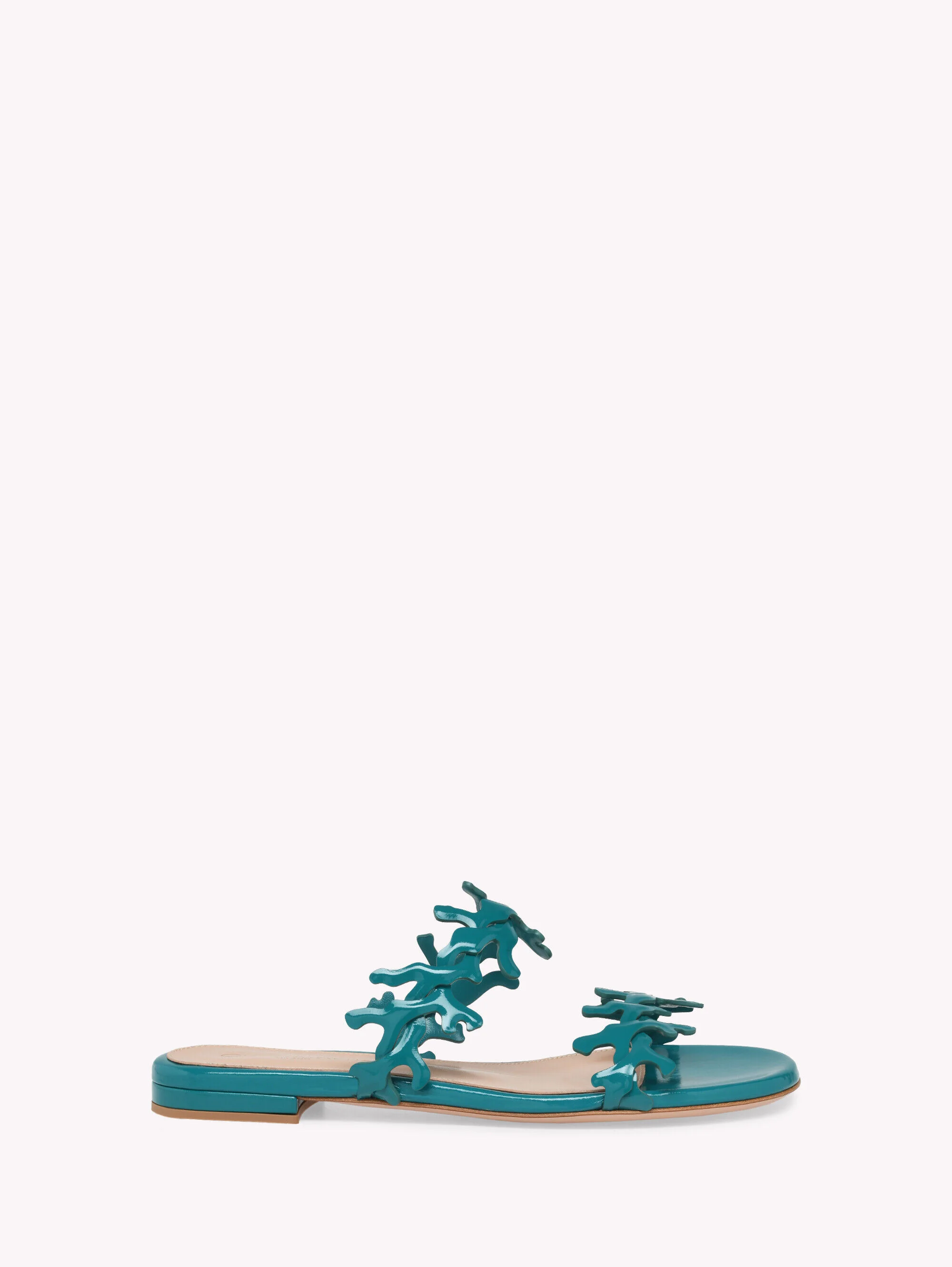 Crafted from Nuit, the Maison's distinctive soft glossy leather, Ocean Mule is a round toe flat style with a laser-cut coral motif and a 10mm low heel. Handmade in Italy. - Composition: 100% NAPPA - Heel Height: 0.2 inches / 5 mm - Model Code: G10157.05RIC Item ID: G10157.05RIC.NUITEAL