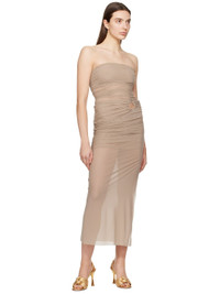 Handcrafted padded nappa leather heeled sandals in metallic gold tone. · Open toe · Knotted detailing at vamp · Elasticized padded slingback strap · Logo stamp at leather footbed · Covered spool heel with rubber injection · Leather sole · Heel: H3.75" Supplier color: Mekong Upper: leather. Sole: leather, rubber. Made in Italy 241090F125050