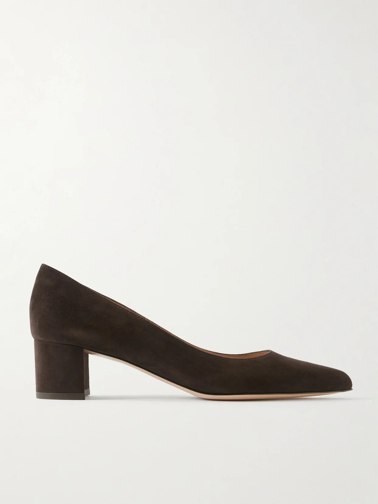 Gianvito Rossi's ‘Piper' pumps are just as suited to the office as they are brunch. Made in Italy from velvety suede, they have almond toes and manageable 45mm block heels for all-day comfort. Wear yours with jeans or tailoring.
