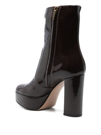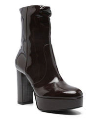 platform leather boots Highlights - Brown - Platform sole - Block heel - Side zip fastening - Ankle length - Glossy finish Imported Composition Lining: Fabric 100% Outer: Leather 100% Sole: Rubber 100%