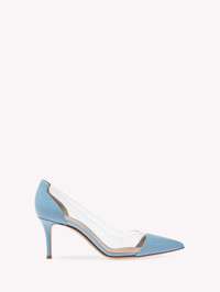 Crafted from soft precious leather and see-through Plexi panels, Plexi 70 is a delicate pointy pump standing on a 70mm stiletto heel. Handmade in Italy as in the best artisanal tradition. - Composition: 60% PATENT + 40% TPU - Heel height: 70 - Model Code: G28560.70RIC Item ID: G28560.70RIC.VGLAITR