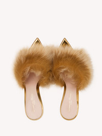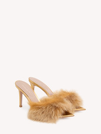 Crafted from metal-effect leather, Jenny is a pointed open-toe mule with an 85mm stiletto heel. The upper is embellished with real shearling. Handmade in Italy. If you wish to return a product, you can return it for free within 30 days of the reception of your order. Please return the items in the same condition in which they were received, including dustbag, box and protective stickers. Incomplete, damaged, worn or altered items cannot be accepted as stated in our Terms and Conditions . Standard shipping FREE (3-5 business days) Express shipping $60 (1-3 business days) Deliveries are made from Monday to Friday between 9:00 a.m. and 6:00 p.m. The time frame for delivery is calculated from the time your order is dispatched, not from the time your order was placed. Please check our Shipping page for further information. - Composition: 100% NAPPA - Heel height: 3.3 inches / 85 mm - Model Code: G10015.85RIC Item ID: G10015.85RIC.ABMDEMK