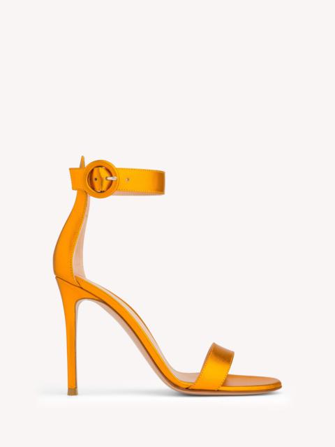 A limited-edition for the 10th anniversary of the Portofino sandal, reinterpreted in 10 new nuances - all available in metal-effect leather - inspired by the colours of the namesake Italian city. Defined by timeless elegance, Portofino 105 presents a 105mm stiletto heel. The ankle strap with the round tonal buckle features the exclusive "Portofino 10th Anniversary" embossing. Handmade in Italy. If you wish to return a product, you can return it for free within 30 days of the reception of your order. Please return the items in the same condition in which they were received, including dustbag, box and protective stickers. Incomplete, damaged, worn or altered items cannot be accepted as stated in our Terms and Conditions . Standard shipping FREE (3-5 business days) Express shipping $60 (1-3 business days) Deliveries are made from Monday to Friday between 9:00 a.m. and 6:00 p.m. The time frame for delivery is calculated from the time your order is dispatched, not from the time your order was placed. Please check our Shipping page for further information. - Composition: 100% NAPPA - Heel height: 4.1 inches / 105 mm - Model Code: G61096.15RIC Item ID: G61096.15RIC.NPSORAN
