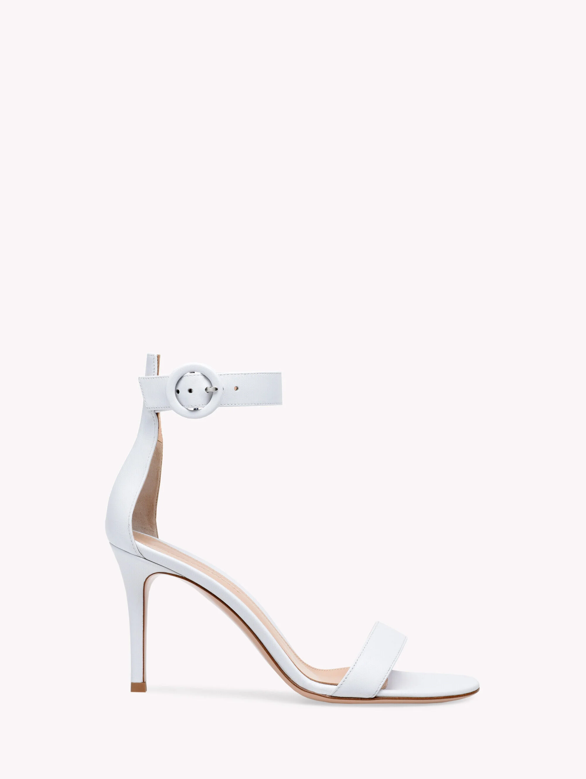 A modern take on classic aesthetic, the Portofino 85 sandal is set on an 85mm stiletto heel enhancing the silhouette. The design also features an ankle strap finely embellished with a matching rounded buckle. Handmade in Italy. - Heel Height: 3.3 inches / 85 mm - Model Code: G60953.85RIC Item ID: G60953.85RIC.NAPBIAN