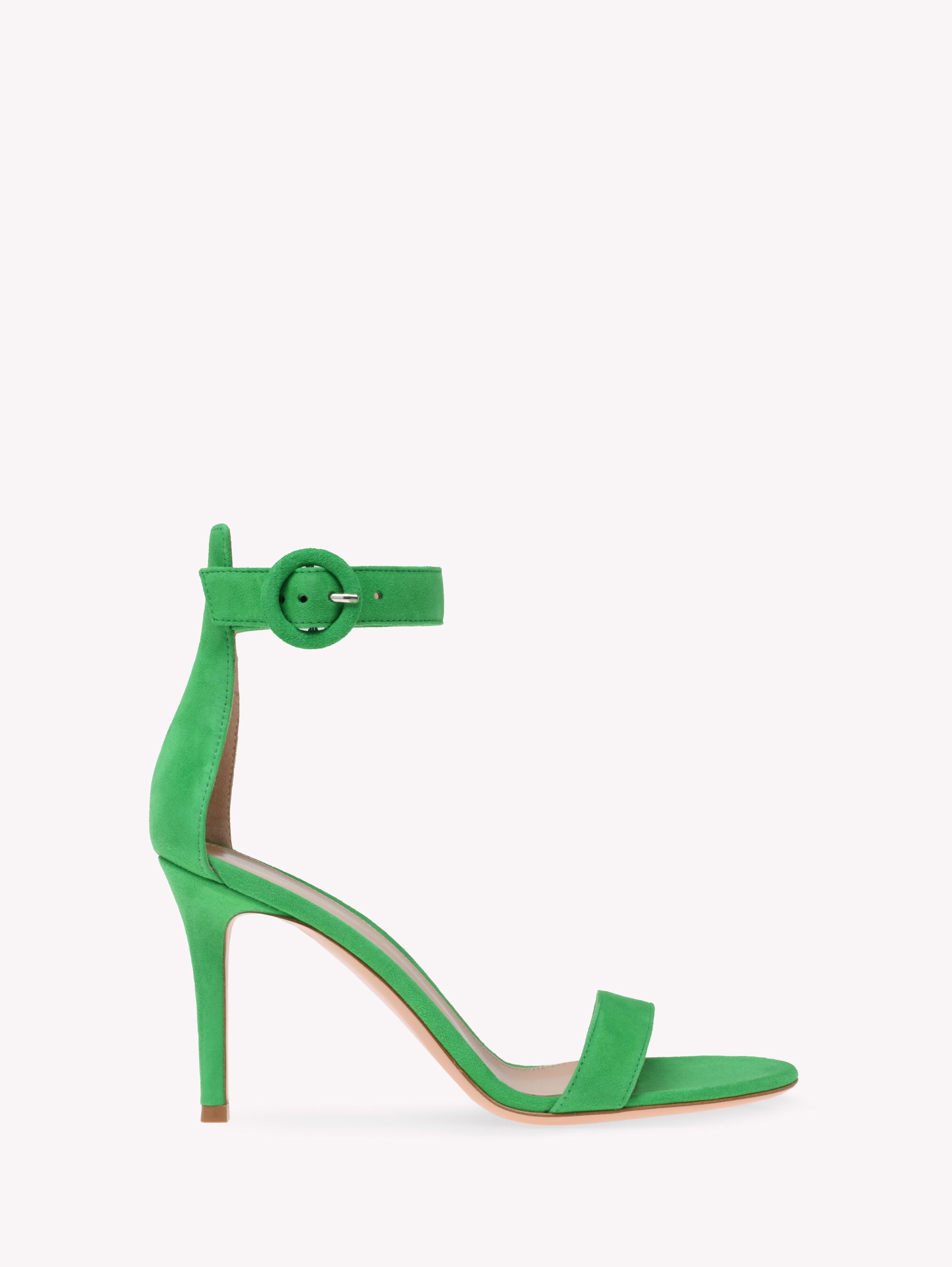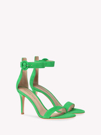 A modern take on classic aesthetic, the Portofino 85 sandal is set on an 85mm stiletto heel enhancing the silhouette. The design also features an ankle strap finely embellished with a matching rounded buckle. Handmade in Italy. - Composition: 100% SUEDE - Heel height: 85 - Model Code: G60953.85RIC Item ID: G60953.85RIC.CAMGREE