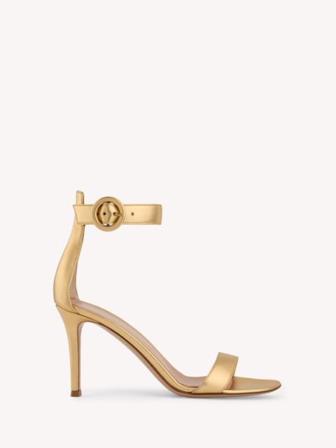 A modern take on classic aesthetic, the Portofino 85 sandal is set on an 85mm stiletto heel enhancing the silhouette. The design also features an ankle strap finely embellished with a matching rounded buckle. Handmade in Italy. - Composition: 100% SUEDE - Heel Height: 3.3 inches / 85 mm - Model Code: G60953.85RIC Item ID: G60953.85RIC.CAMNERO