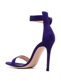 Portofino 105mm suede sandals Gianvito Rossi's signature Portofino sandals are updated in a purple hue for AW23. Handcrafted in Italy from suede, this pair is accented with a '60s-inspired round buckle at the ankles and a towering 105mm stiletto heel that flatters the leg. Highlights - Purple - Calf suede - Single toe strap - Buckle-fastening ankle strap - 105mm stiletto heel - Branded leather insole Made in Italy Composition Suede 100% SIZE & FIT Measurement HEEL 3.93 in(10 cm)