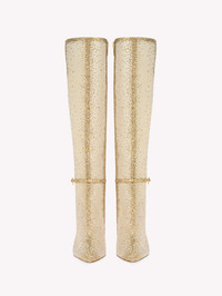 Rania Boot is an elegant pointed-toe style with a 105mm stiletto heel and a zip in the inside. Crafted from precious see-through organza silk and finished with metallic-effect suede trims, this style finely embellished with degrade dazzling crystals. Handmade in Italy. - Composition: 30% SUEDE + 70% FABRIC - Heel Height: 4.1 inches / 105 mm - Model Code: G80245.15RIC Item ID: G80245.15RIC.BORMENU