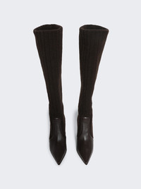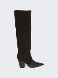 Ribbed Knit Calf Boots Beige