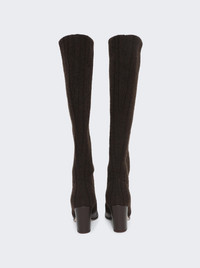 Details - Pull-on style - Almond toe - Heel Height: 80 mm - Block heel - High Calf, ribbed knit Dimensions: Listed in EU sizing. Fits true to size Composition: Upper: Ribbed Knit; Sole: Rubber Care: Care according to label Brand Style: G80123-85RIC-VKCMOMO Designer/Brand: GIANVITO ROSSI