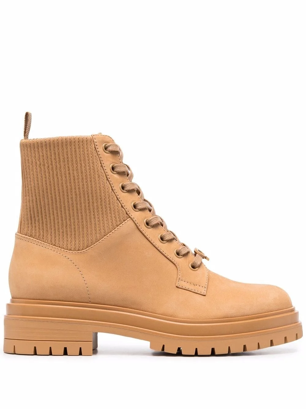 ribbed-panel lace-up boots beige leather ribbed panelling pull-tab at the heel front lace-up fastening round toe ridged rubber sole Made in Italy Composition Leather 100% SIZE & FIT Measurement HEEL 1.96 in(5 cm) HEIGHT 5.51 in(14 cm) Sole height 1.18 in(3 cm)