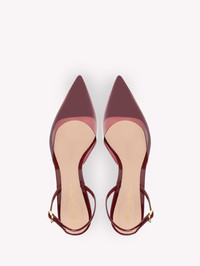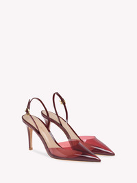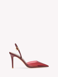 Ribbon d'Orsay 85 is a pointed-toe slingback combining metal effect leather with a Plexi upper. The 85mm stiletto heel is covered in matching leather. The ankle strap is embellished with the iconic Ribbon buckle, signature of the brand, in gold metal. Handmade in Italy. - Composition: 50% TPU + 50% CALF - Heel height: 85 - Model Code: G95336.85RIC Item ID: G95336.85RIC.PXVSYSY