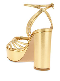 Rita platform sandals Highlights - Gold - Metallic finish - Crossed straps - Logo detail - Adjustable ankle strap - Block heel Made in Italy Composition Outer: Calf Leather 100% Lining: Calf Leather 100% Sole: Rubber 100% SIZE & FIT Measurement HEEL 4.72 in(12 cm)