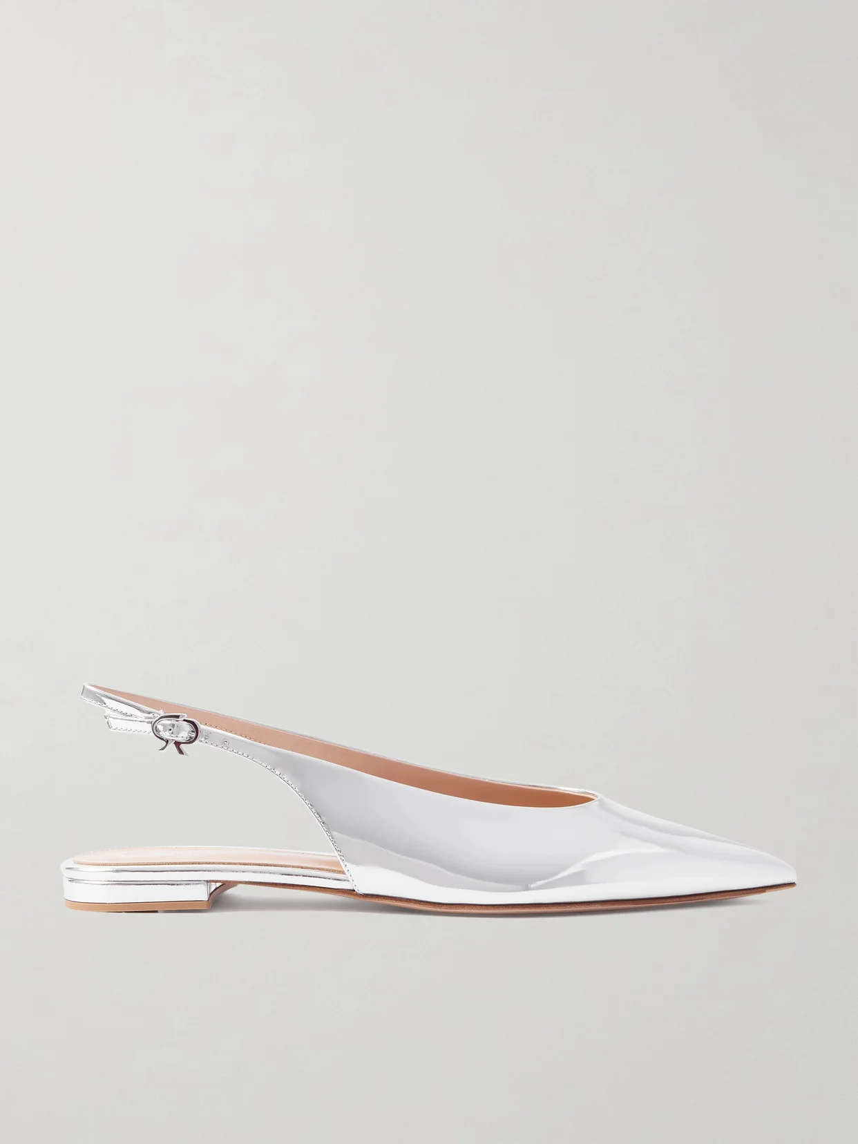 Gianvito Rossi's 'Robbie' slingback flats have been handmade in Italy with exceptional attention to detail, so the curved vamps and pointed toes feel especially defined. Resting on slim soles, they're made from silver mirrored-leather that'll reflect the light, day or night.