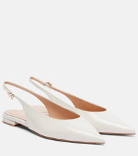 The Robbie slingback flats by Gianvito Rossi are a sophisticated pair for both formal occasions and refined everyday looks. Crafted from patent leather, this pair features pointed toes and straps finished with the signature Ribbon buckle. Product Details - Upper: lamb leather - Lining: leather - Sole: leather insole and sole - Toe shape: pointed toe - Made in Italy - Includes: shoe box, dust bag - Designer color name: Offwhite - Item color: white - Hardware color: gold - Slingback strap - Item number: P01106027 Size & Fit - True to size - European sizes