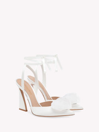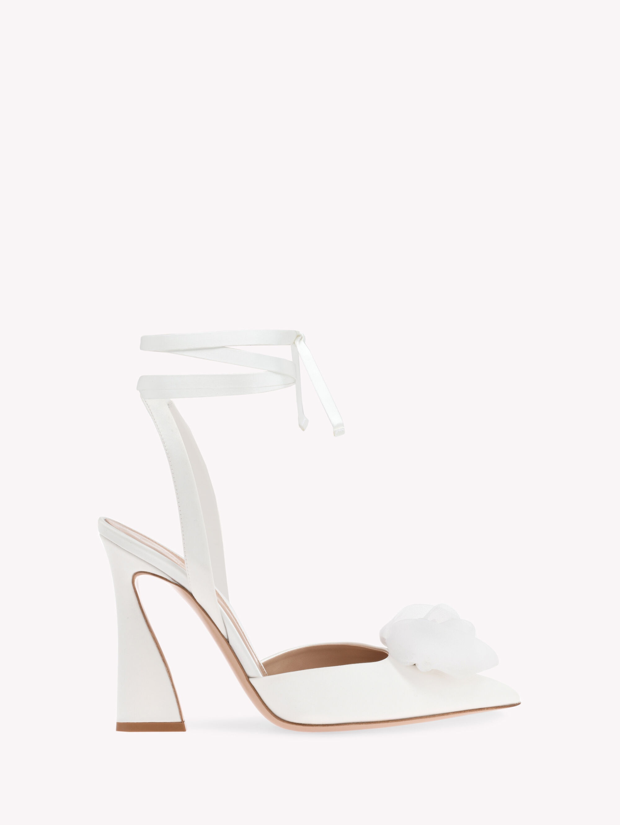 Set on a 105mm sculptural heel, Roselyn is a pointed-toe d’Orsay style crafted in precious satin and decorated with a tone-on-tone silk organza flower. A tonal ribbon wrap ankle tie completes the design. Handmade in Italy. - Composition: 100% FABRIC - Heel height: 4.1 inches / 105 mm - Model Code: G95488.15RIC Item ID: G95488.15RIC.RASBIAN