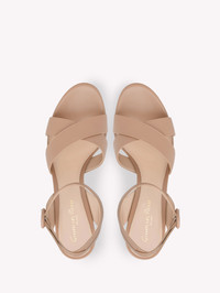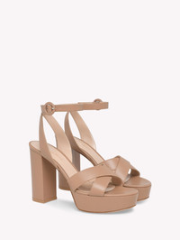 Crafted from leather, Sabrina is a round toe sandal with a 35mm platform and a 105mm chunky heel. The ankle strap is adorned with a round buckle. Handmade in Italy. - Composition: 100% NAPPA - Heel Height: 2.8 inches / 70 mm - Model Code: G32621.70RIC Item ID: G32621.70RIC.NAPPRAL