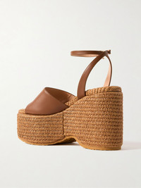 Gianvito Rossi's 'Thalia' sandals are set on raffia-trimmed wedge platforms that not only offer 100mm of lift but are surprisingly comfortable too. They're made from leather and have lightly cushioned insoles. Size & Fit - Fits true to size, take your normal size - Italian sizing Details & Care - Wedge heel measures approximately 100mm/ 4 inches with a 60mm/ 2.5 inch platform - Brown leather (Calf) - Buckle-fastening ankle strap