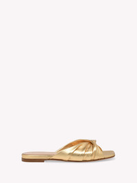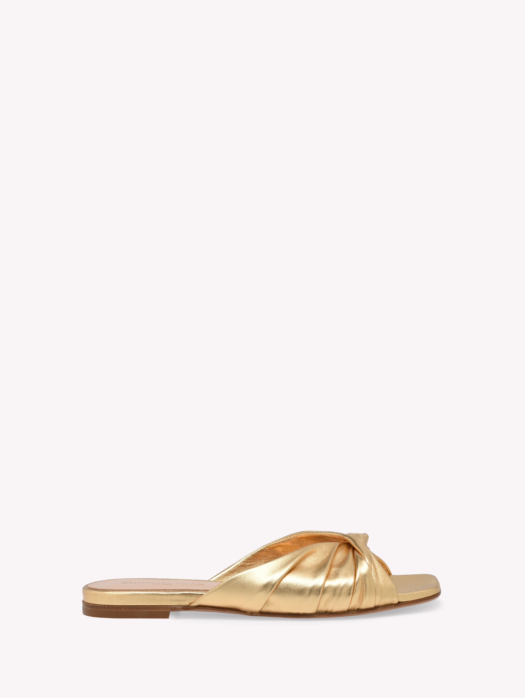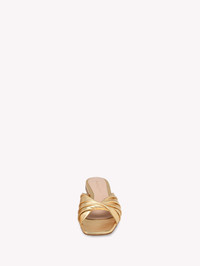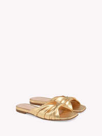 Crafted from metal-effect leather, Selene is a square toe flat slide with a 5mm stack heel. The sophisticated ruched upper front is crafted as in the best artisanal tradition. Handmade in Italy. If you wish to return a product, you can return it for free within 30 days of the reception of your order. Please return the items in the same condition in which they were received, including dustbag, box and protective stickers. Incomplete, damaged, worn or altered items cannot be accepted as stated in our Terms and Conditions . Standard shipping FREE (3-5 business days) Express shipping $60 (1-3 business days) Deliveries are made from Monday to Friday between 9:00 a.m. and 6:00 p.m. The time frame for delivery is calculated from the time your order is dispatched, not from the time your order was placed. Please check our Shipping page for further information. - Composition: 100% NAPPA - Heel height: 0.2 inches / 5 mm - Model Code: G10004.05CUO Item ID: G10004.05CUO.NPSMEKO