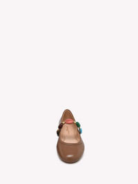 Crafted from leather, Shanti Mary Jane is a flat ballerina style with a tonal rubber sole. The front strap is embellished with Chakra-inspired natural cabochon stones and gold metal studs. Handmade in Italy. - Composition: 100% NAPPA - Heel Height: 0.2 inches / 5 mm - Model Code: G22346.05GOM Item ID: G22346.05GOM.NXFCUOI